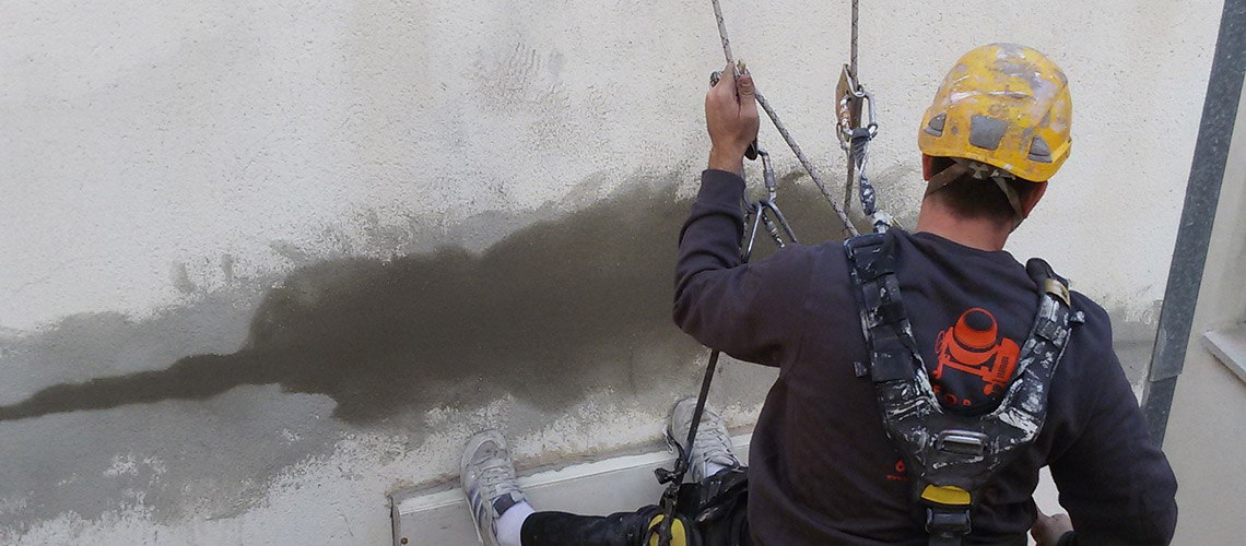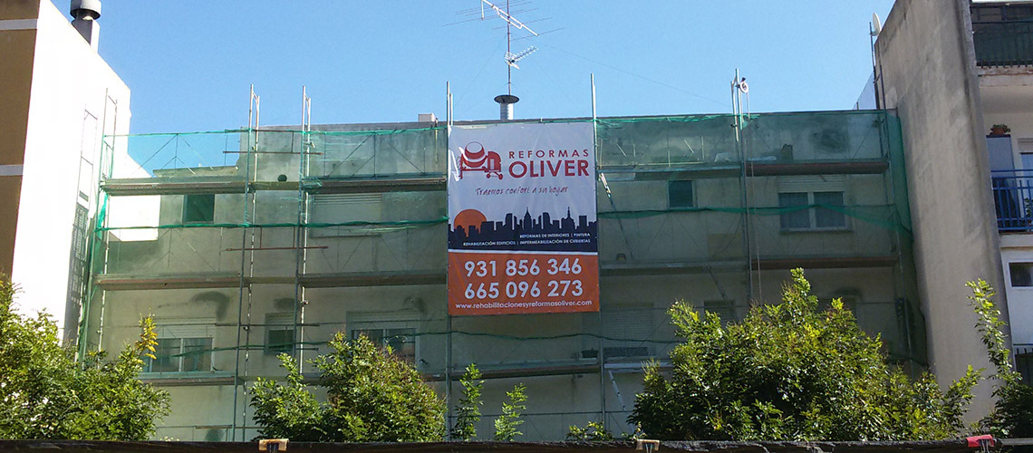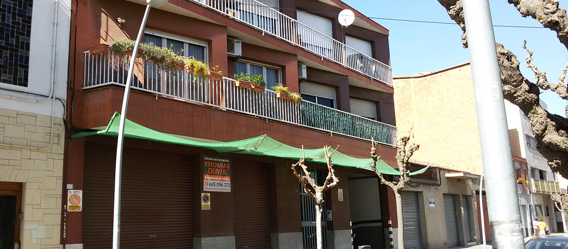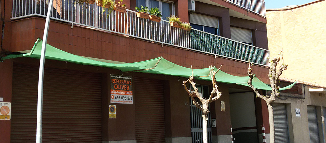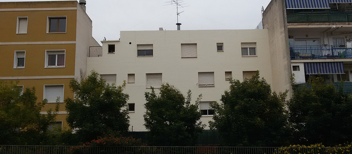 Barcelona, Doctor Marti i Julia 197 Repicado de zunchos. Colocación de Vierteaguas. Pintado de fachada.