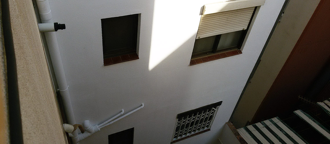 Barcelona, Doctor Marti i Julia 197 Trabajos verticales. Reparación de grietas. Pintado de patio de luces con pintura siloxanica.