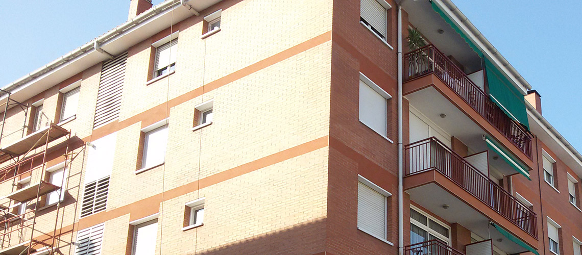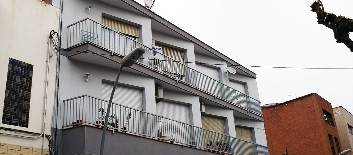 Molins de Rei, Verge del Pilar 4 Repicado zunchos de balcones. Aplicación Monocapa. Reparación Obra vista